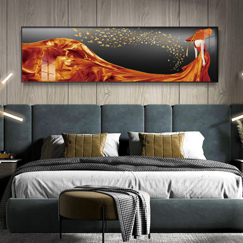 现代简约美女壁画主卧室房间床头装饰画轻奢客厅背景墙面横幅挂。热门设计联盟服务商