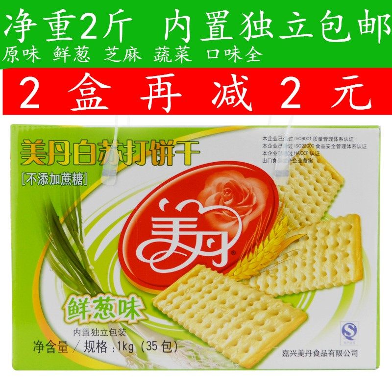美丹无蔗糖苏打饼干鲜葱味整箱手提1000g咸味办公室休闲净重2斤热门设计联盟服务商