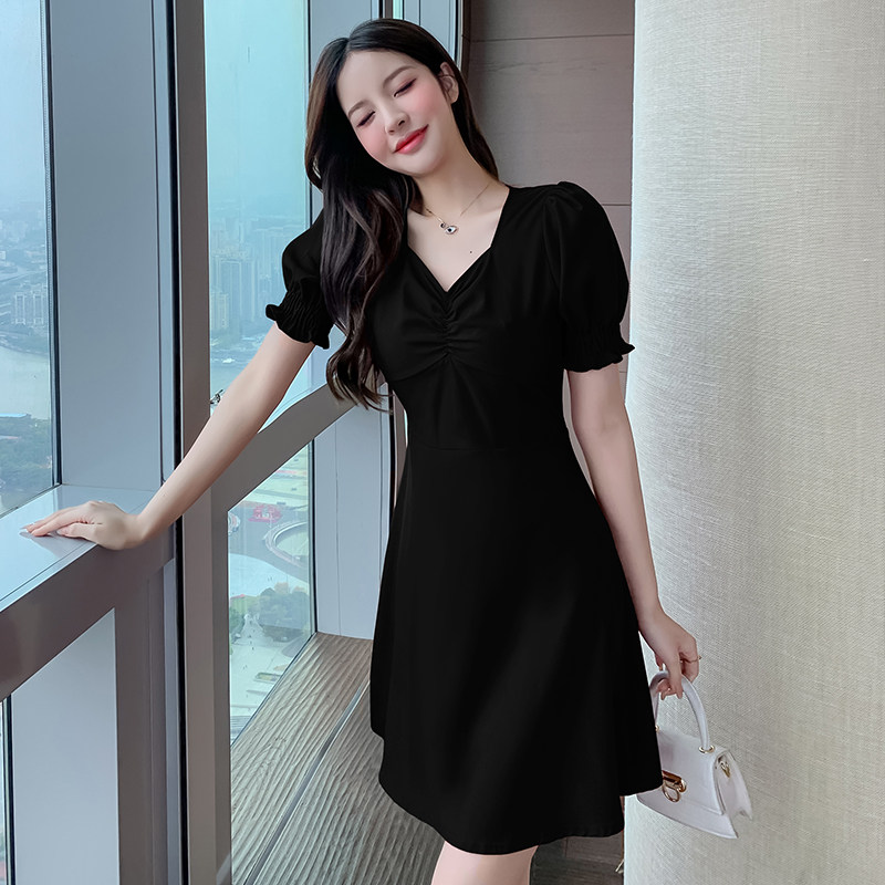 夏季女装2022年新款法式复古黑色气质小个子显瘦设计感a字连衣裙热门设计联盟服务商