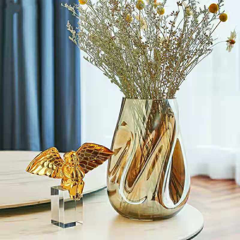 出口西班牙单扭曲风波纹设计手工异形水培花瓶不规则花器装饰摆件热门设计联盟服务商