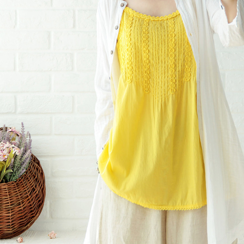 花栈 吊带设计感小众外穿打底内搭纯棉纯色蕾丝宽松背心轻松脱去热门设计联盟服务商